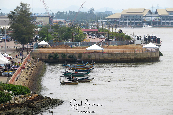Mengadap ke arah muara selatan Sungai Terengganu, kalau zoom-in ketat-ketat boleh juga nampak sikit pantai di Primula Beach Hotel.
