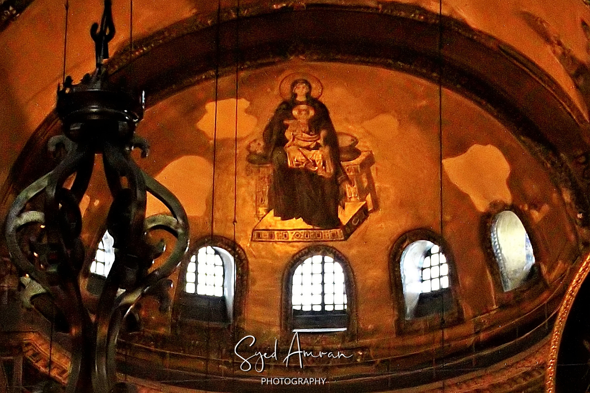Ketika ditukar fungsi menjadi masjid, semua lukisan-lukisan asal gereja Ortodox ini telah di tampal. Tapi Mustafa Kemal Ataturk telah menukarkan masjid ini menjadi sebuah muzium dan mengarahkan supaya plaster yang menutupi lukisan-lukisan itu ditanggalkan untuk menunjukkan ciri gereja yang asal. Antara lukisan-lukisan yang ada di sini adalah lukisan Virgin Mary and Baby Jesus dan angels.