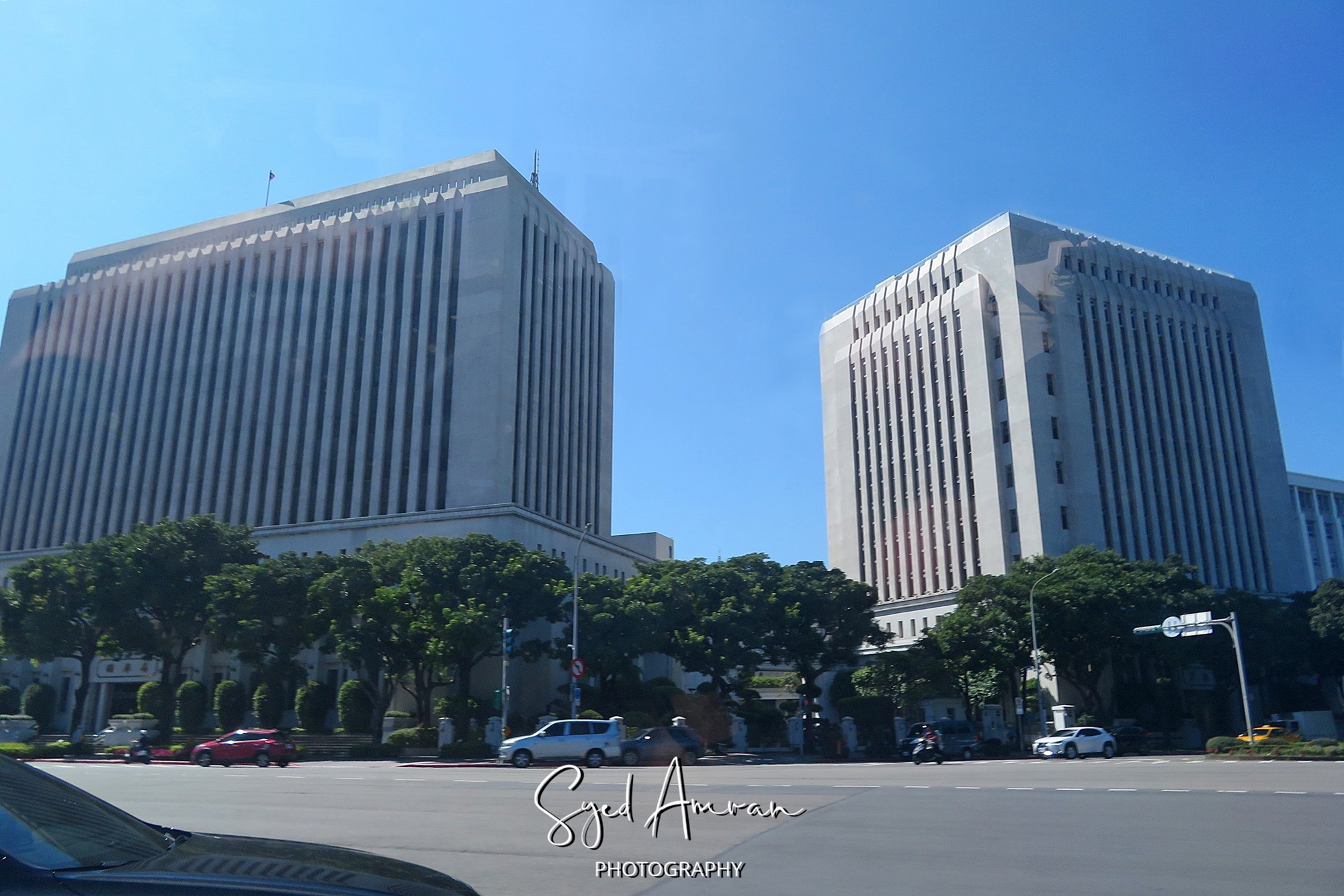 On the left is the Central Bank of the Republic of China (Taiwan) and on the right is the central banking bureau building.