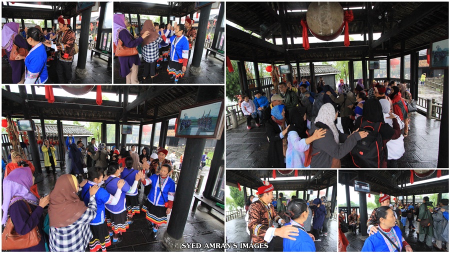 Dan bila bot-bot sampai di rumah-rumah di tasik ni, persembahan tarian atau nyanyian akan dibuat oleh kaum-kaum etnik minoriti Zhuang, Dong, Miao dan Yao di rumah-rumah kaum masing-masing. Kalau tak silap ni kaum Miao.