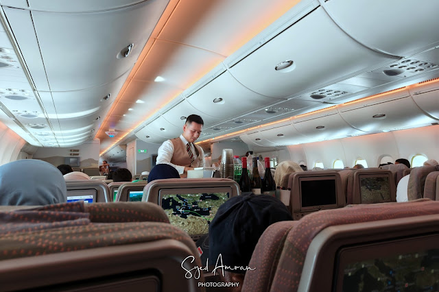 Penerbangan dari Dubai ke Casablanca sangat panjang, lebih kurang selama 8 jam 40 minit. Dengan jarak penerbangan yang begitu jauh, memanglah kami bersyukur dapat terbang dengan pesawat Airbus 380 seperti ini kerana tempat duduknya selesa dengan legroom yang luas.